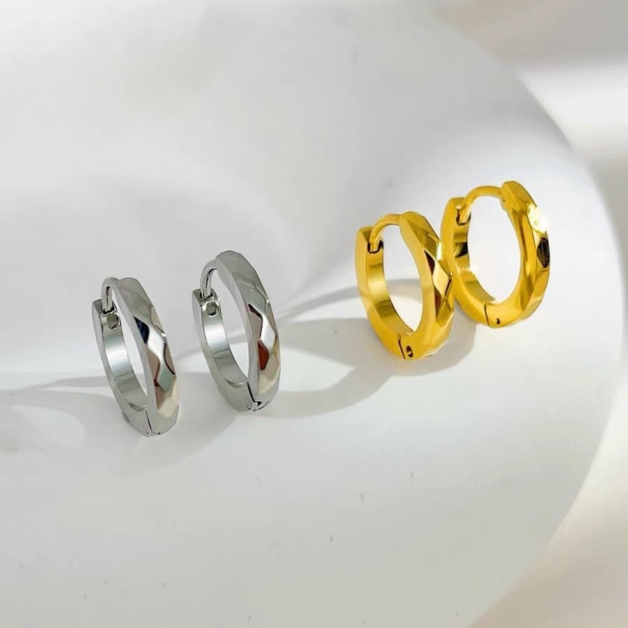 Titanium steel earrings Korean style simple smooth diamond cut face earring ring plain ring ear buckle personality light luxury high-end earrings for women