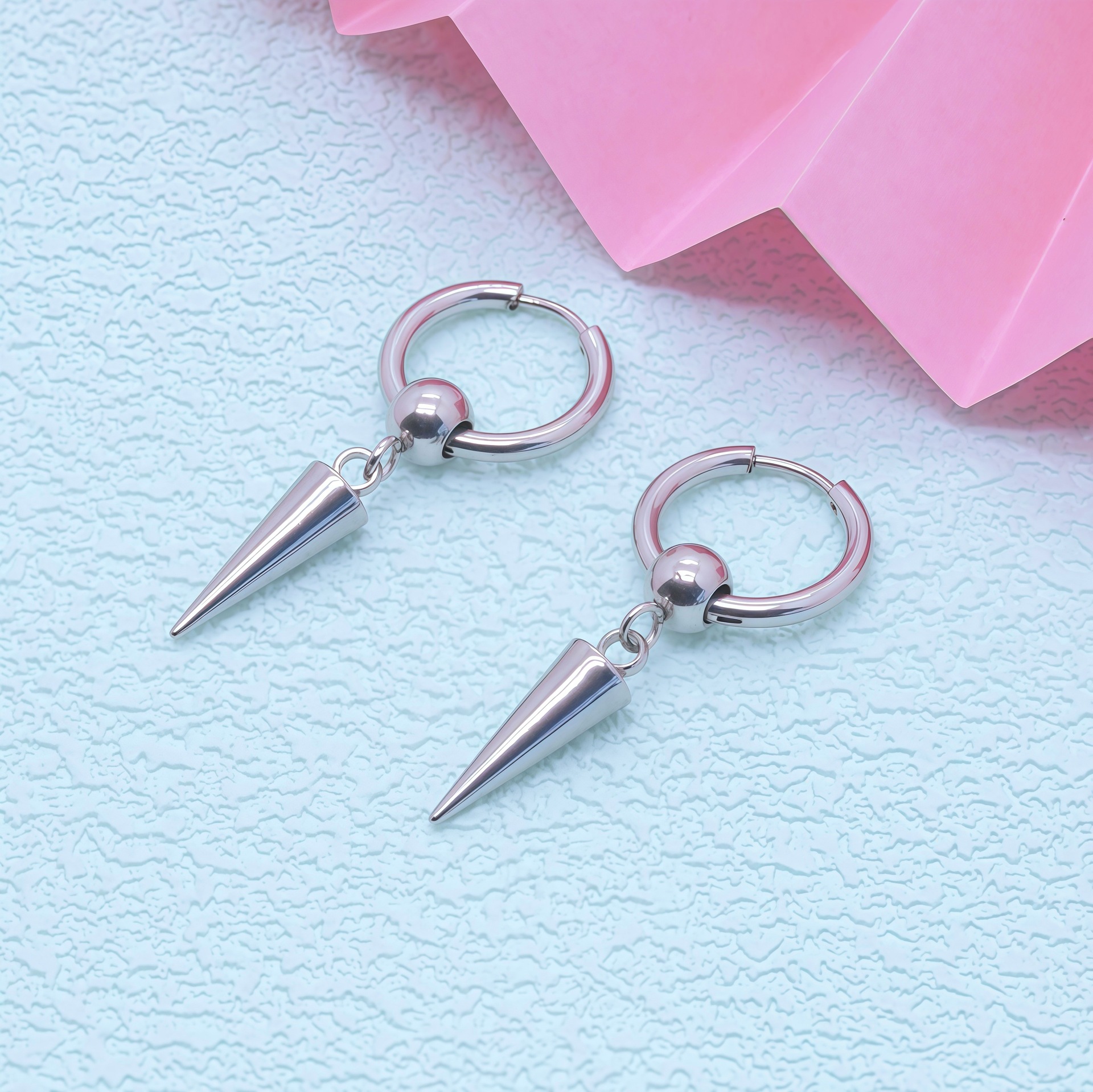 Cross-Border Minimalist Neutral Cold Style Stainless Steel Pointed Cone Cross Earrings Unisex Pendant Ear Cuffs Wholesale
