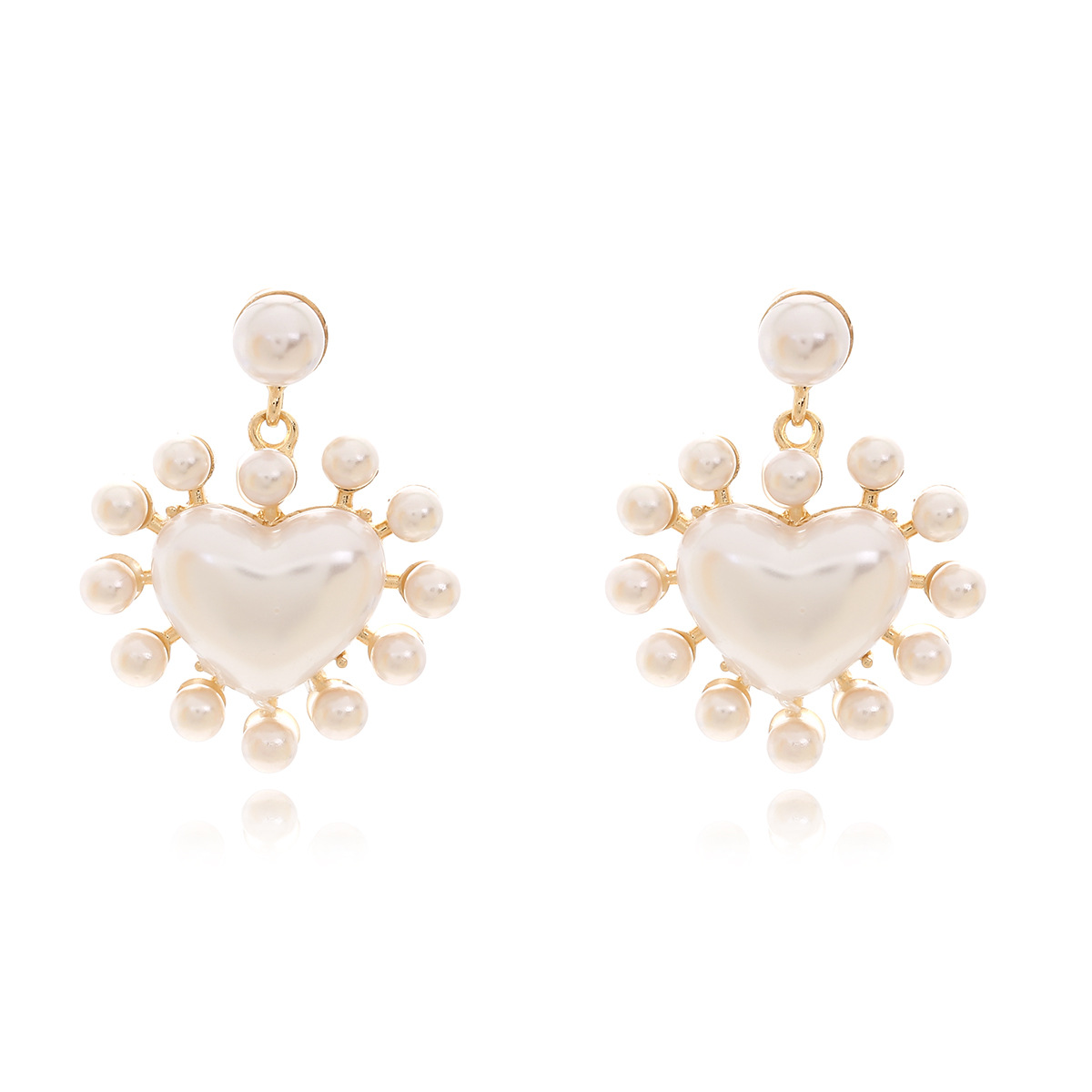 New Ins Sweet Heart-Shaped Imitation Pearl Pendant Earrings Fashionable Elegant Heart Pearl Earrings Cross-Border Earrings