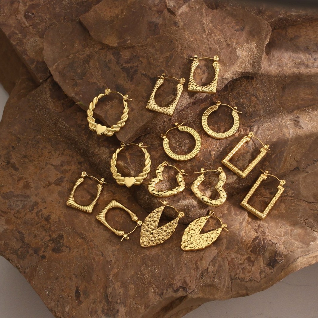 Cross-Border Hot-Selling Geometric Asymmetrical Hammer Pattern Stainless Steel Oil-Filled Solid Earrings Simple and Versatile 18K Gold-Plated Earrings