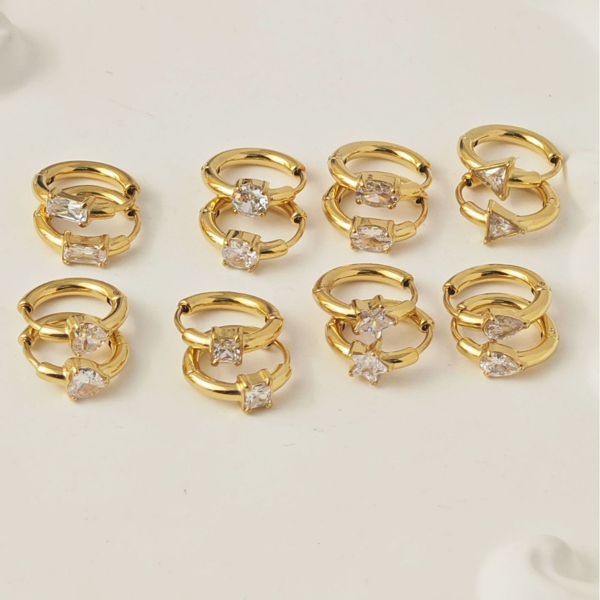 Titanium Steel Inlaid with Zircon Five-Pointed Star, Peach Heart, Water Drop, Square Earrings, Light Luxury, High-End Feel, Versatile Women's Ear Buckle Jewelry