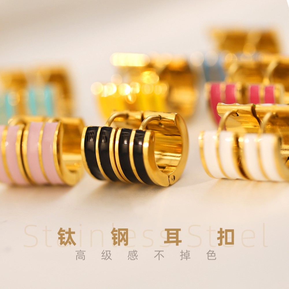 Factory Direct Sales Cross-Border Wholesale 18K Gold High-End Women's Non-Fading Stainless Steel Jewelry Full Circle Glue Circle Earrings