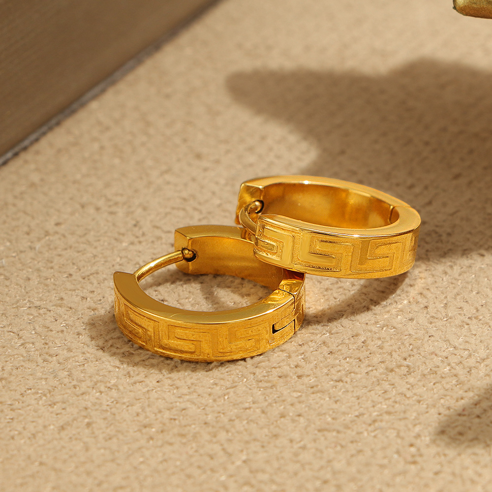 2025 New Style Great Wall Pattern Earrings Stainless Steel Three-Dimensional Roman Pattern Geometric Simple Fashion Minimalist Earrings High-End Feel