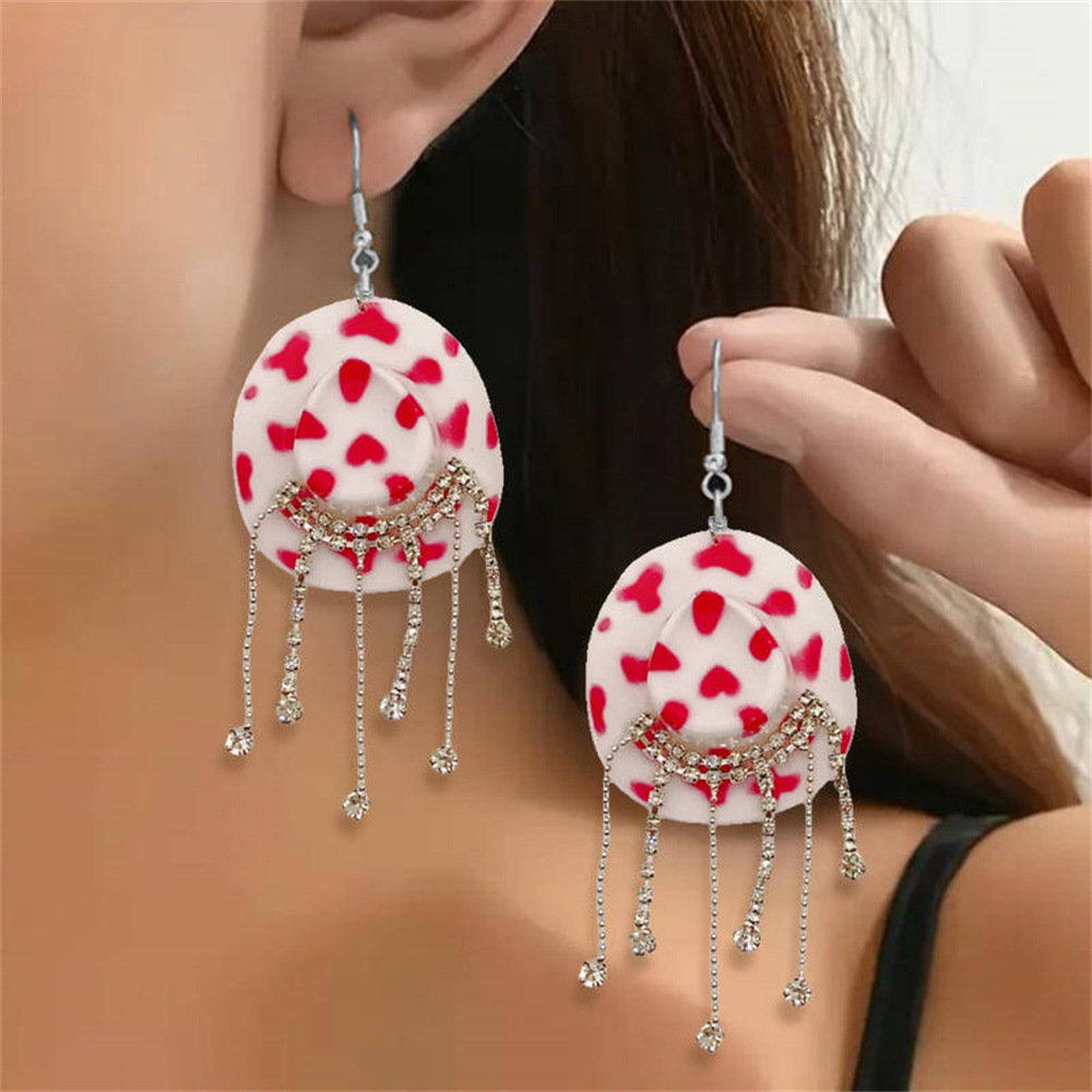 European and American Cross-Border Fashion Diamond Tassel Cowboy Hat Earrings Personalized Hip-Hop Western Cowboy Style Earrings Women's Trend