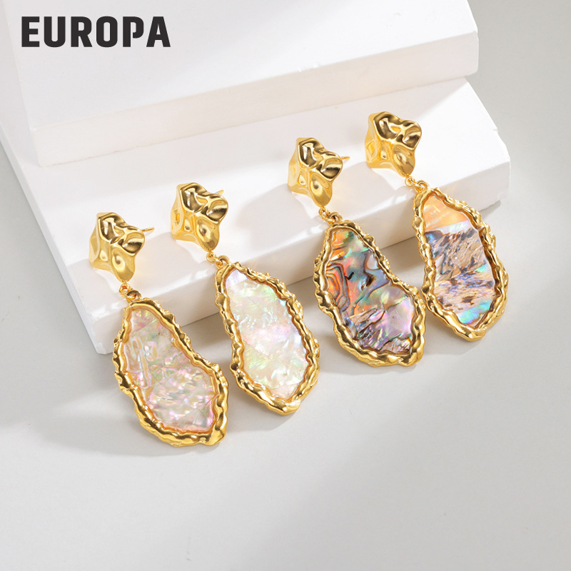 Foreign Trade Jewelry 18K Gold Mother-Of-Pearl Earrings Non-Fading Ins Style Stainless Steel Fashion Design Exquisite Earrings Wholesale
