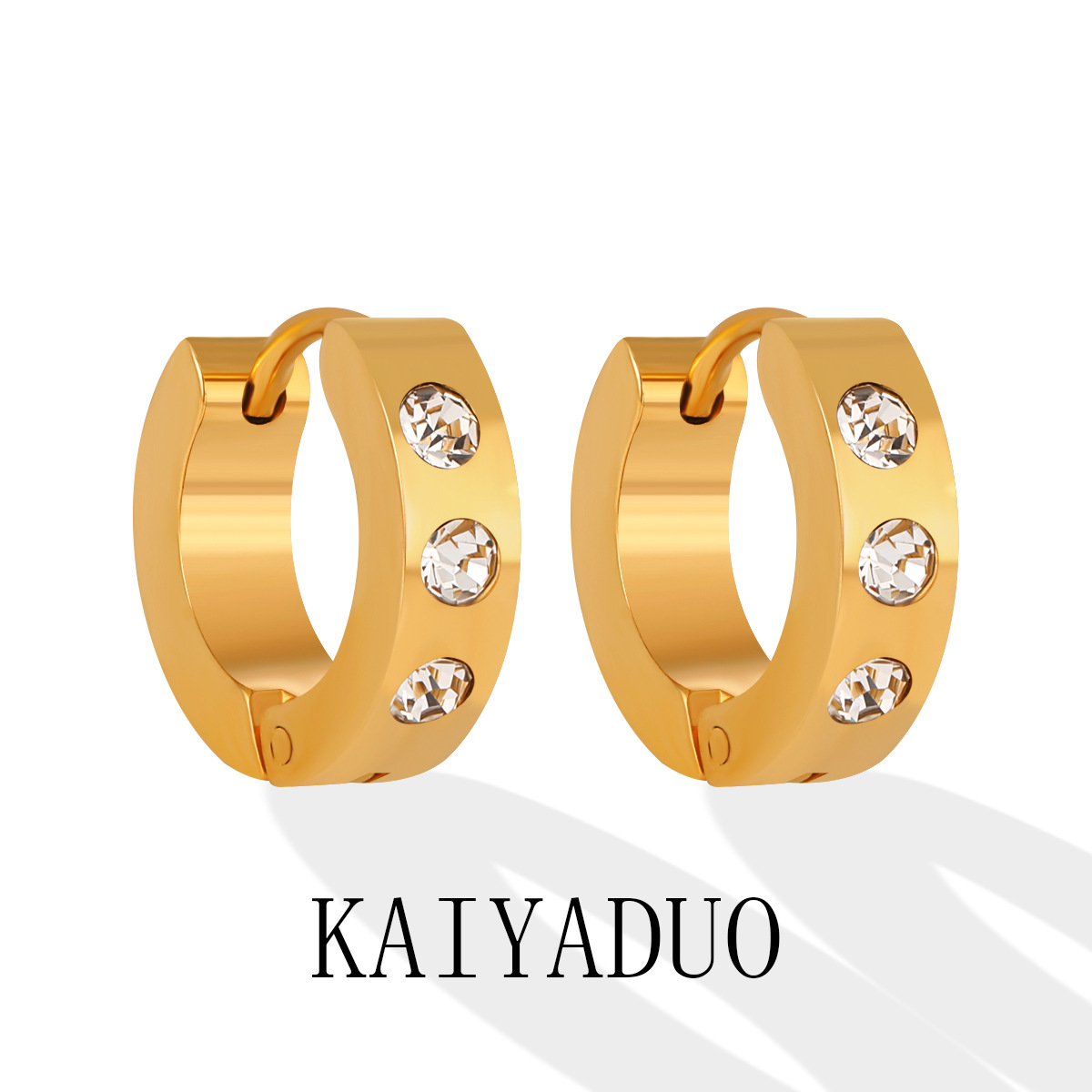 Fashion new simple niche light luxury three diamond earrings female personality all-match gold-plated diamond titanium steel high-grade ear buckle