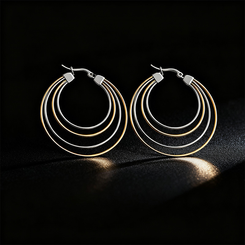 Cross-border European and American style stainless steel earrings 18K gold titanium steel ladies ear buckle geometric round earrings trendy jewelry