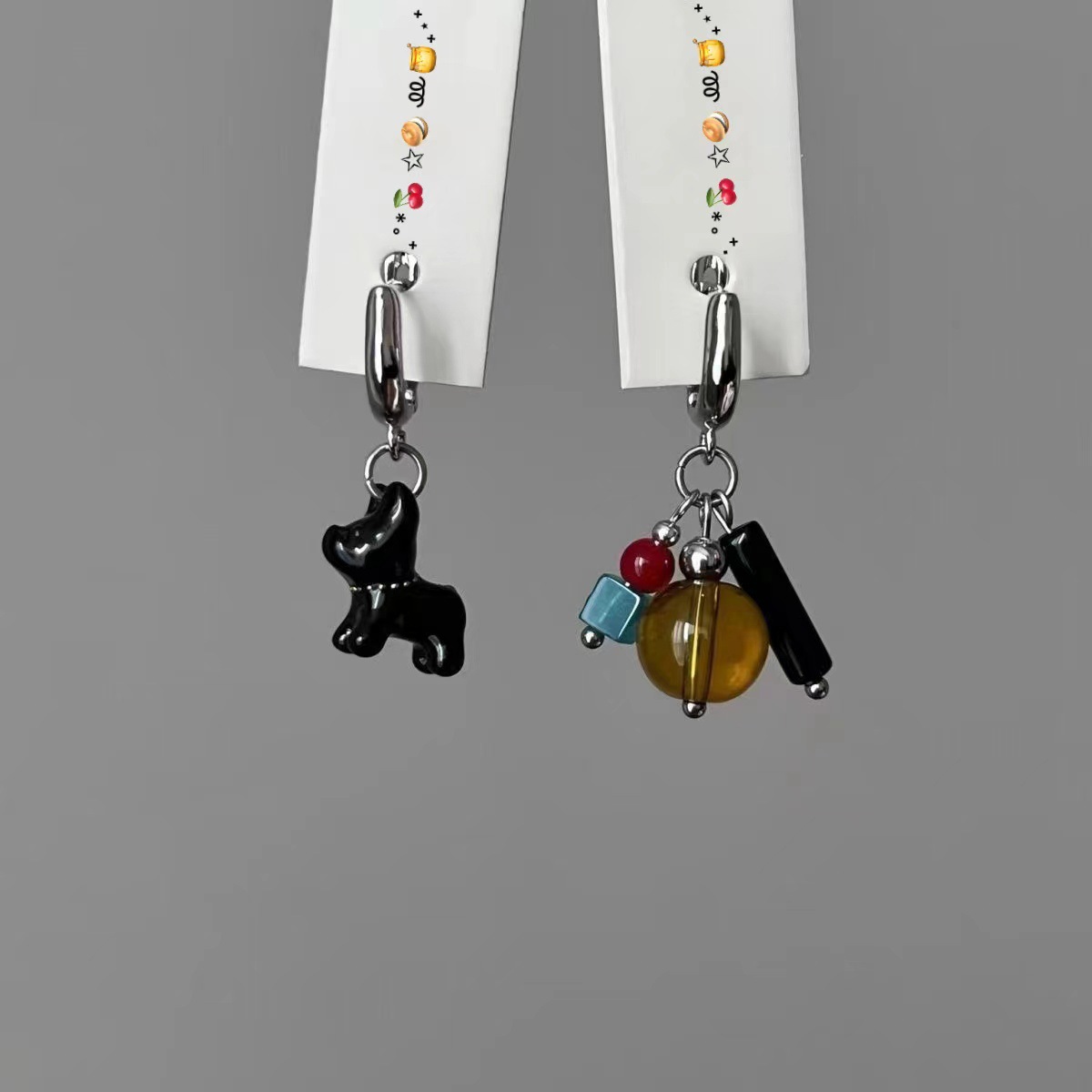 A Black Autumn Dog Niche Design Advanced Color Matching Texture Earrings for Lovers Simple All-match Ear Trendy
