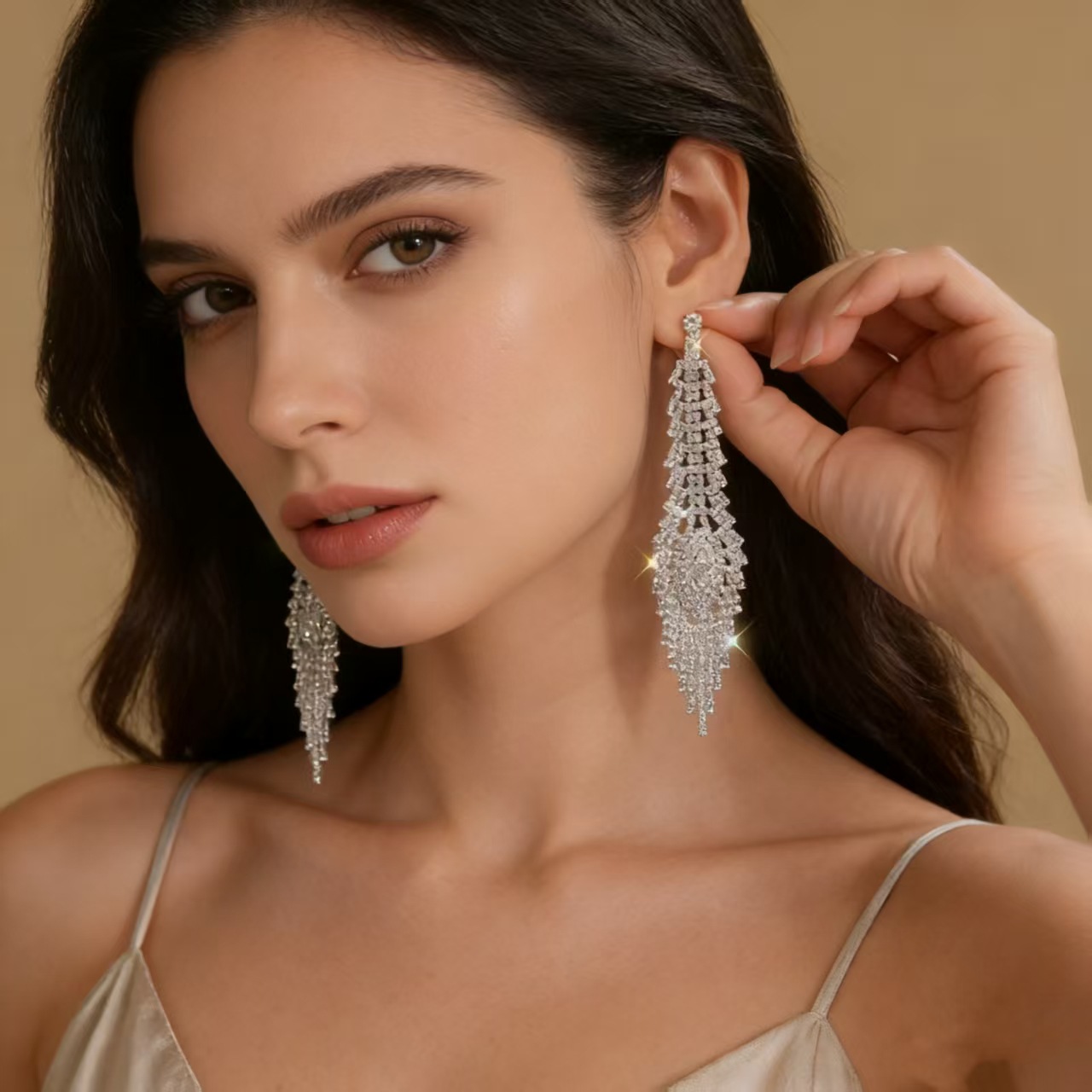Cross-Border Foreign Trade Long Claw Chain Tassel Earrings for Women, Super Exaggerated Full Diamond Butterfly Love Earrings, European and American Popular Earrings