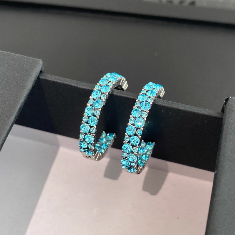 Unique Sparkling Ice Blue Earrings Korean Niche Design High-End Personalized Circle Earrings White Earrings for Women
