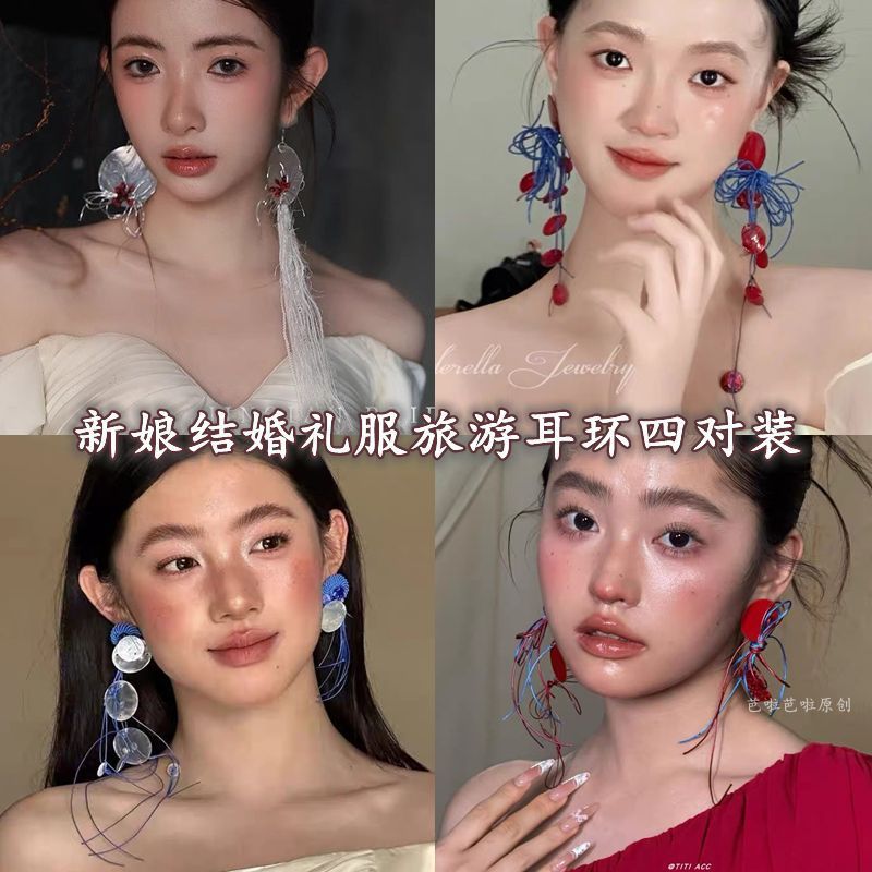 New Chinese Style Bridal Wedding Earrings, Classical Chinese Style Tassel Earrings, Elegant Toast Dress, Dressing Gown Earrings, Cheongsam Accessories