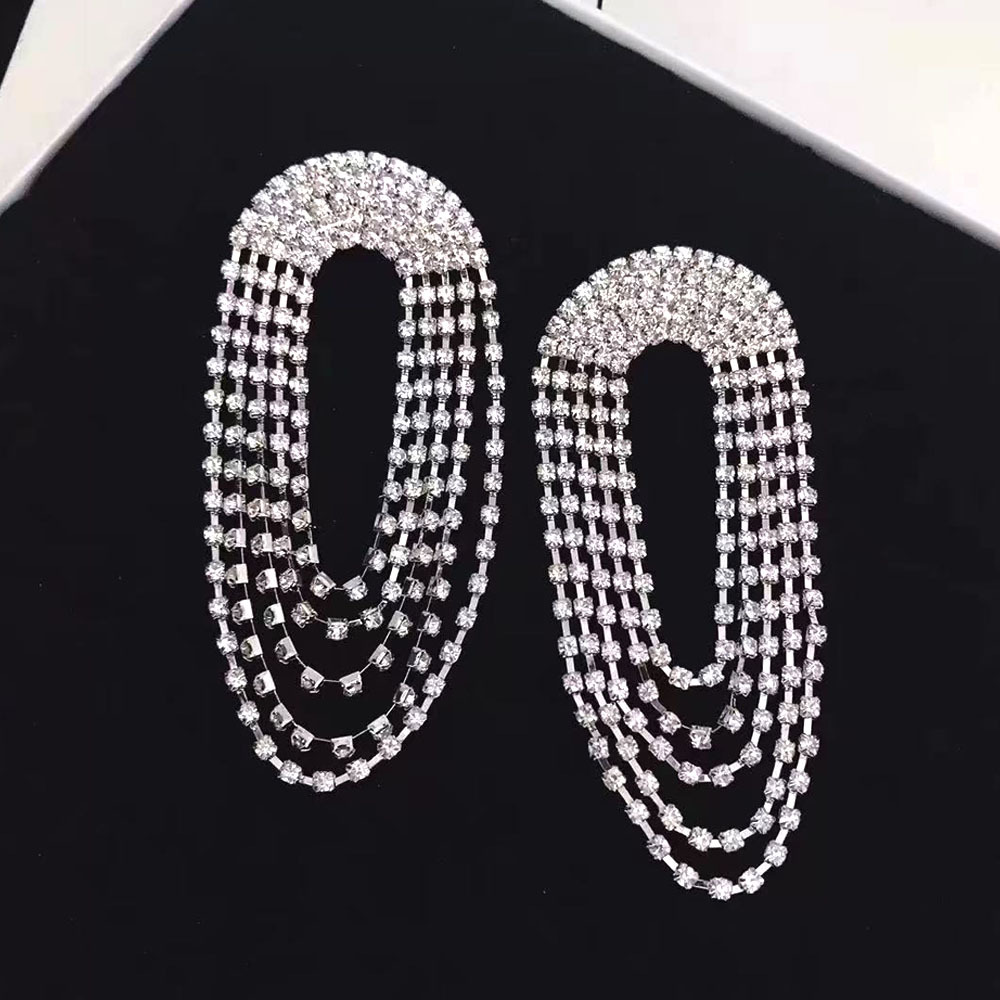 European and American Fashion Street Style Long Multi-Layered Retro Long Tassel Earrings Exaggerated Rhinestone Celebrity Evening Dress Bridal Earrings