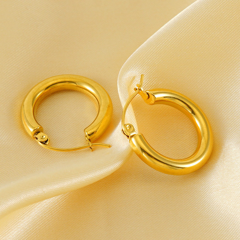 European and American fashion Joker earrings stainless steel 18K gold high-end feeling temperament circle ladies high-end earrings wholesale