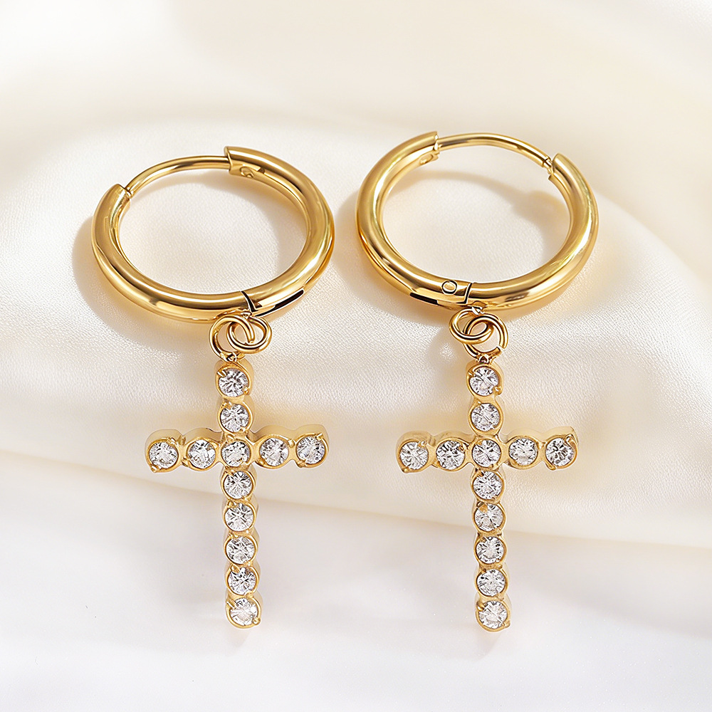 Stainless Steel Cross Earrings Pendant Simple Zircon Earrings Versatile Earrings Non-Fading Jewelry Ear Buckle Set