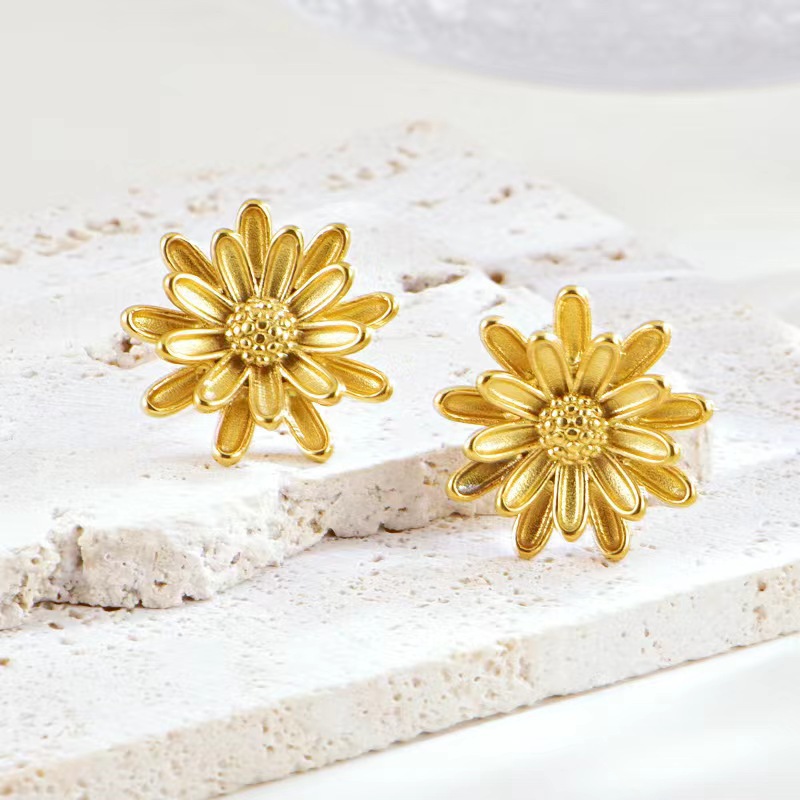 Cross-Border Personalized Stereo Daisy Earrings Titanium Steel Gold-Plated High-End Non-Fading Stainless Steel Earrings Wholesale