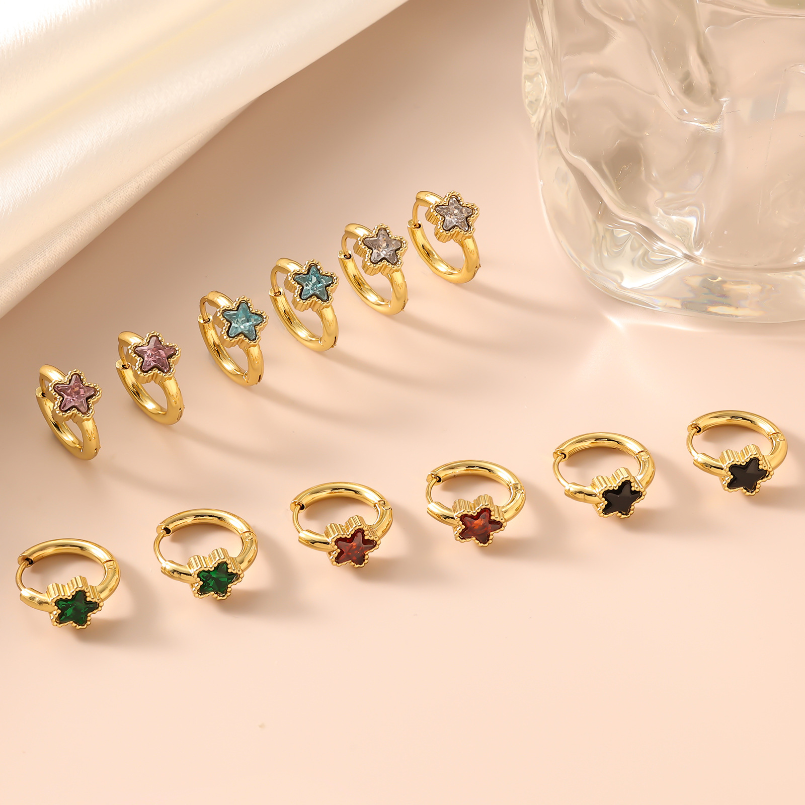 [13 Colors Available] Glass Crystal Earrings, Cute and Fresh, Japanese Style Sweet Girl, Guangzhou Export Jewelry