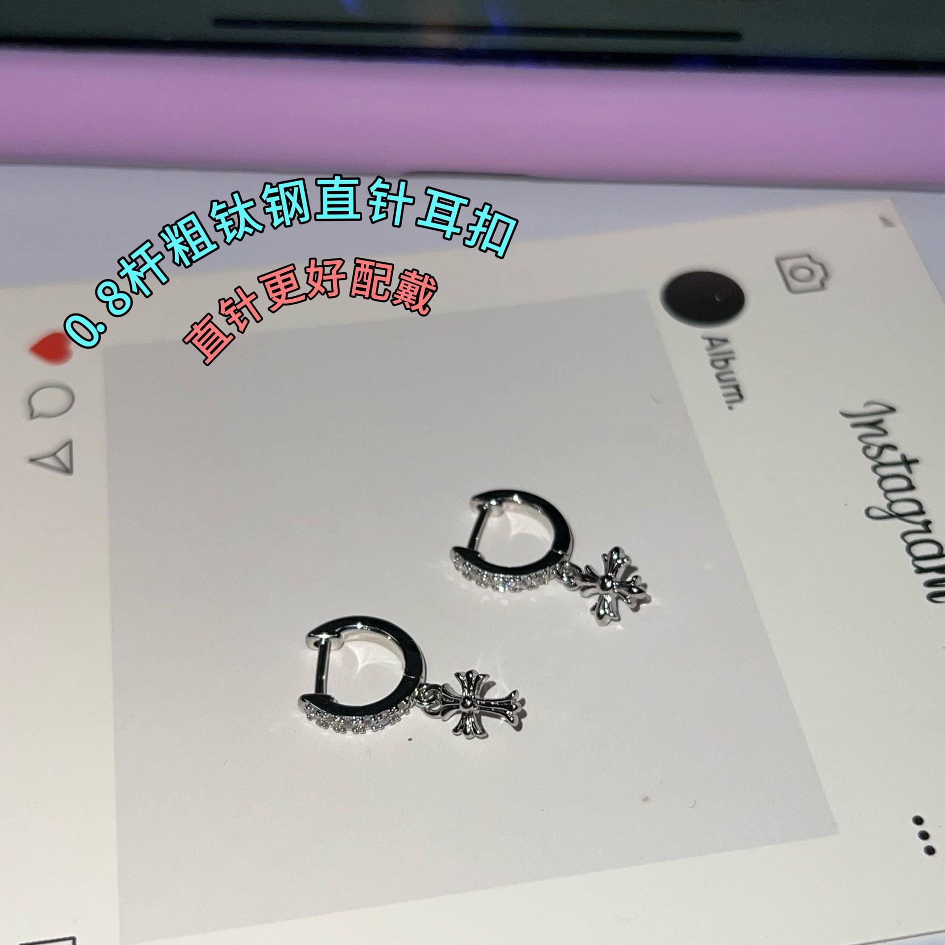 New Crow Cross Straight Needle Earrings Niche Design Light Luxury High-End Earrings Titanium Steel Needle Earrings for Women