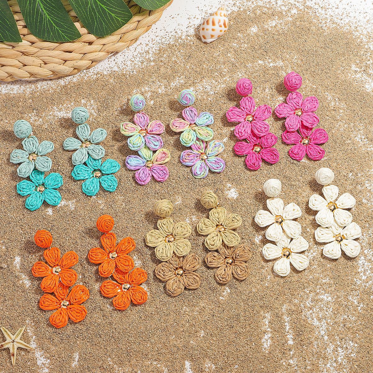 Za Same Style Fresh and Sweet Raffia Flower Earrings Bohemian Holiday Style Cute Floral Personalized Earrings for Women