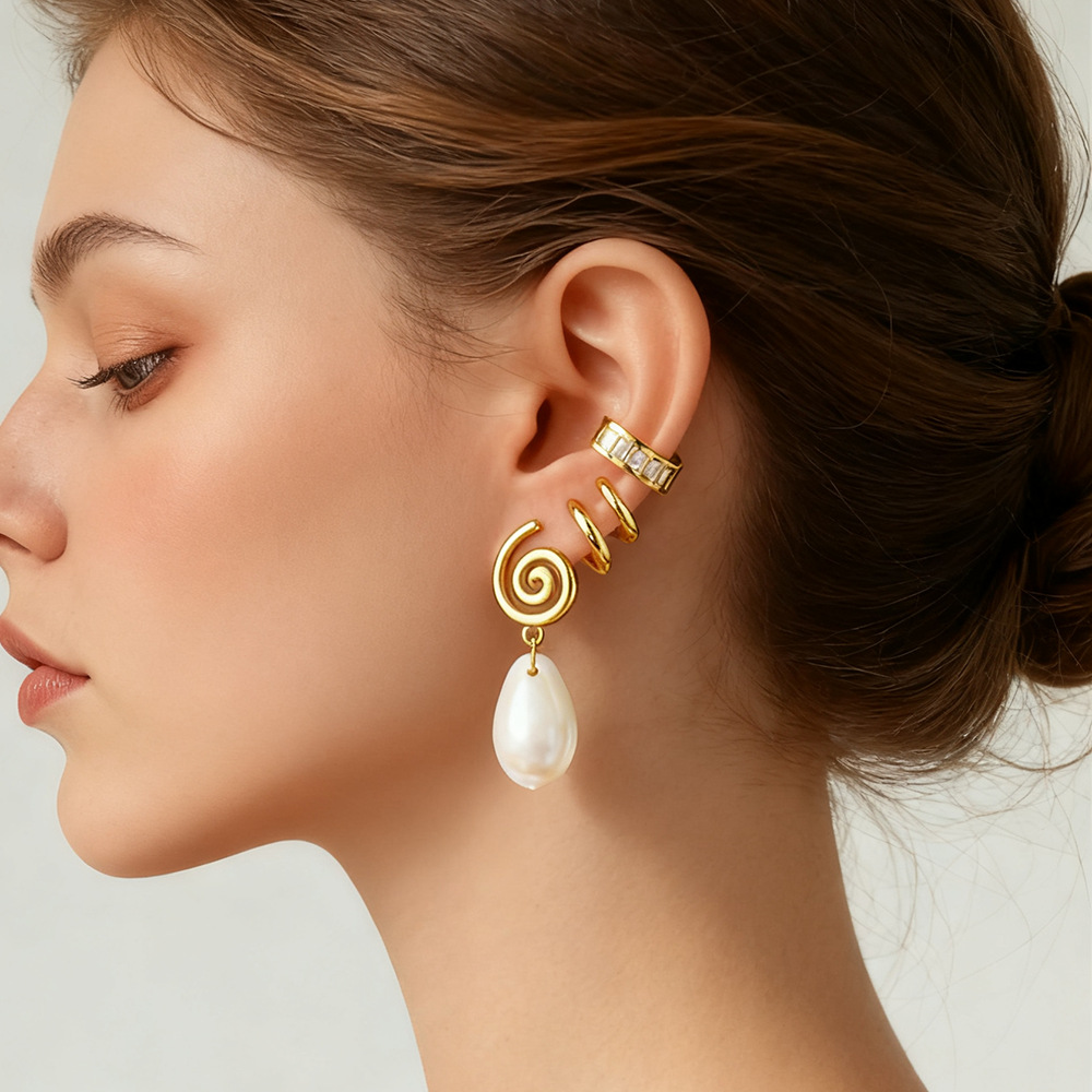 Cross-Border Stainless Steel Earrings, Stylish, Simple and Elegant, Conch Flower Shell Plated 18K Gold Color-Preserving Earrings for Women