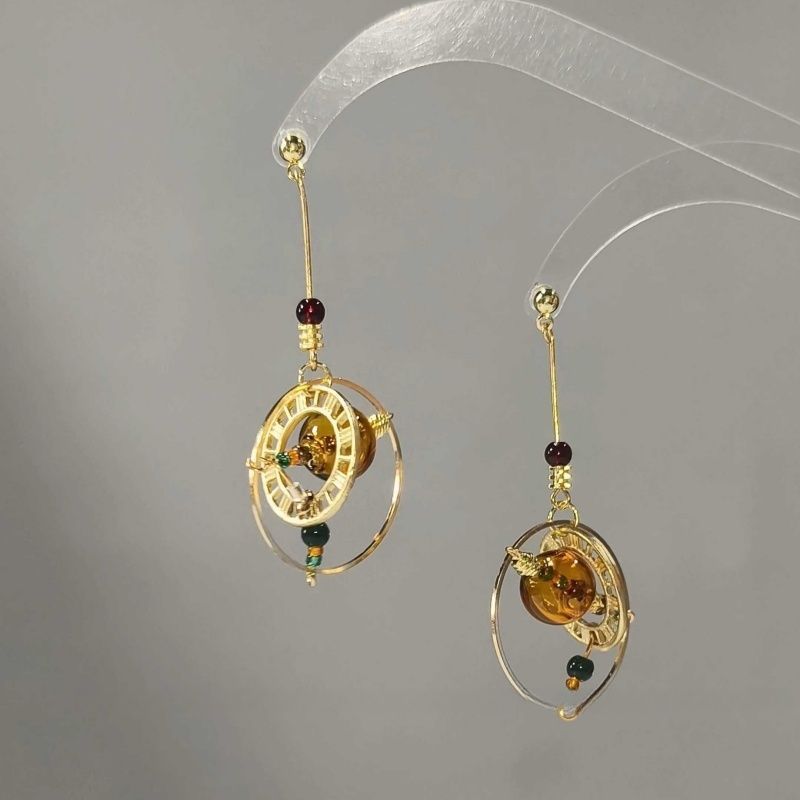 [Time and Space Star Wheel] Original Design Golden Clock Shape Earrings for Women, High-End, Versatile and Exquisite Earrings