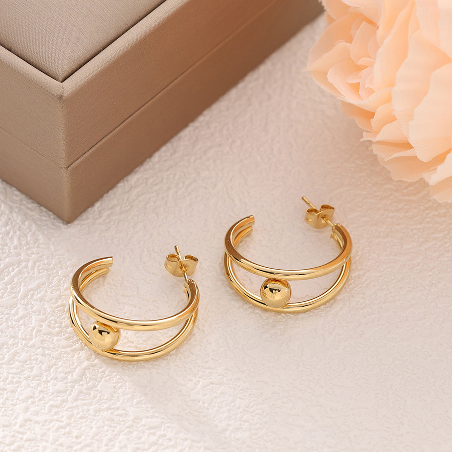 Cross-border beaded internet-famous INS style stainless steel earrings simple personality C- shaped 18K gold-plated earrings ladies
