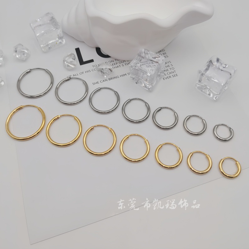 European and American New Stainless Steel One-piece Round Niche High-end Ear Buckle Simple All-match Cold Wind Earrings Earrings