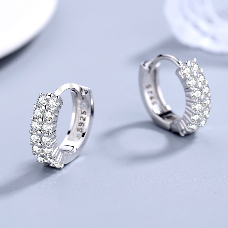 Trendy Silver-Plated Double-Row Zirconia Earrings for Women, Popular on Social Media, Cross-Border Live Sale