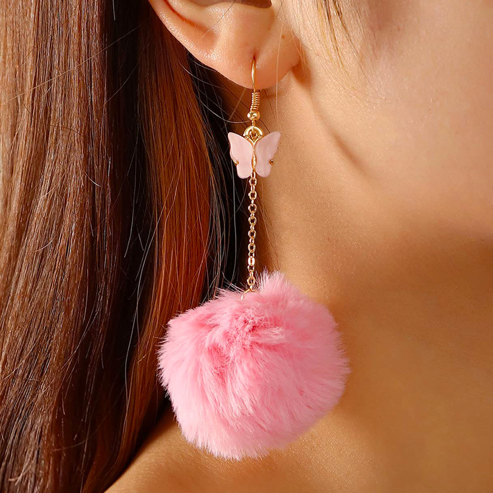 European and American Cross-border Hot Selling Women's Butterfly Hair Ball Earrings Autumn and Winter New Fashion Furry Butterfly Tassel Earrings