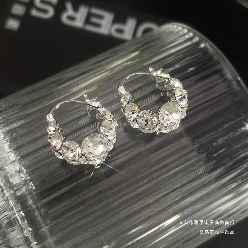 Full Diamond Zircon Hoop Earrings, High-End, Accessible Luxury, Niche Design Earrings, Women's Exquisite, Super Shiny, Versatile Earrings