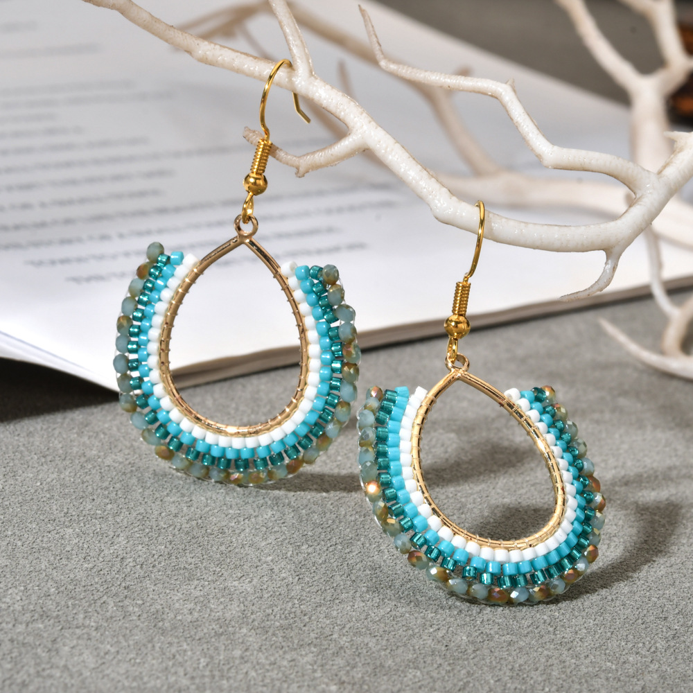 Retro Bohemian ethnic style fan-shaped elegant earrings European and American fashion hand-woven tassel earrings female earrings
