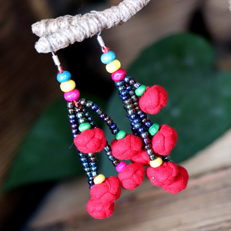Yunnan ethnic style buckle earrings cotton and linen accessories earrings ethnic retro jewelry wholesale