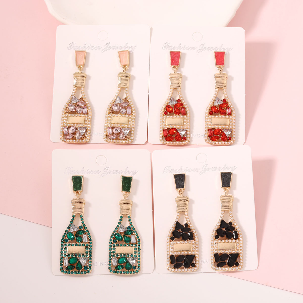 Europe and the United States cross-border holiday style all-match temperament diamond oil fashion imitation pearl wine bottle perfume bottle earrings