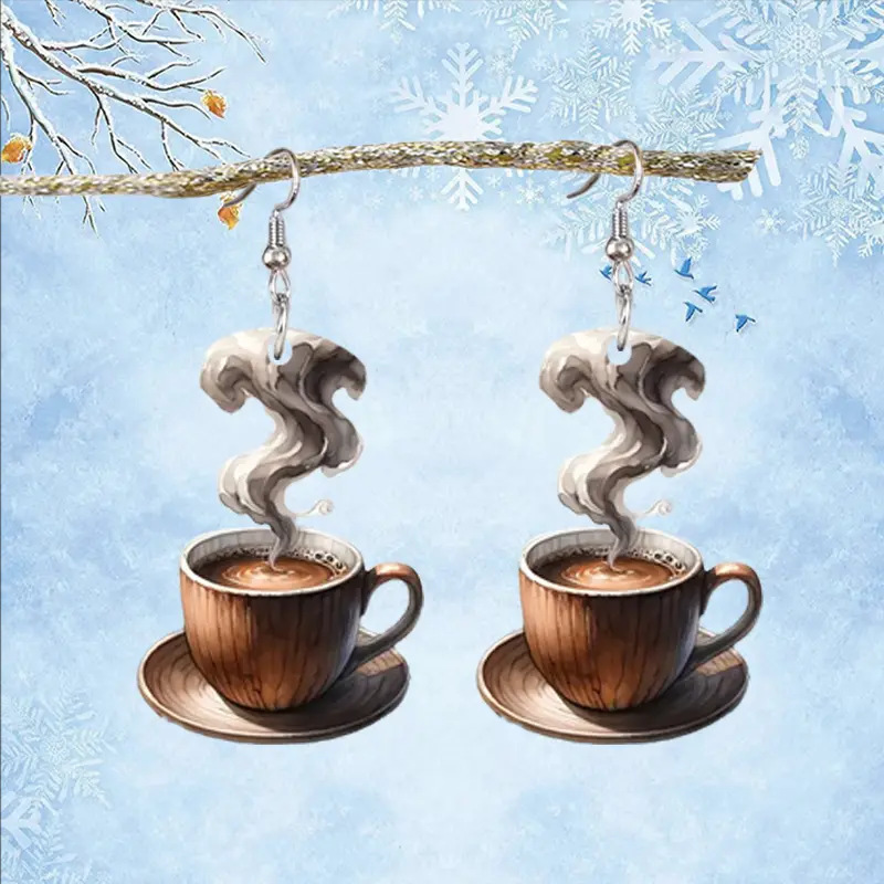Cross-Border Hot Selling Retro and Unique Coffee Cup 2D Acrylic Earrings 2025 Creative Design Earrings