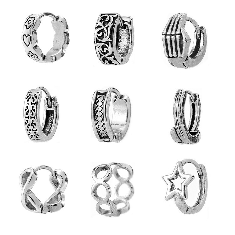 Cross-Border Punk Style Earrings, Personalized and Versatile, Retro Stainless Steel Earrings, Niche Simple Earrings, Hip-Hop Trendy Men's Earrings