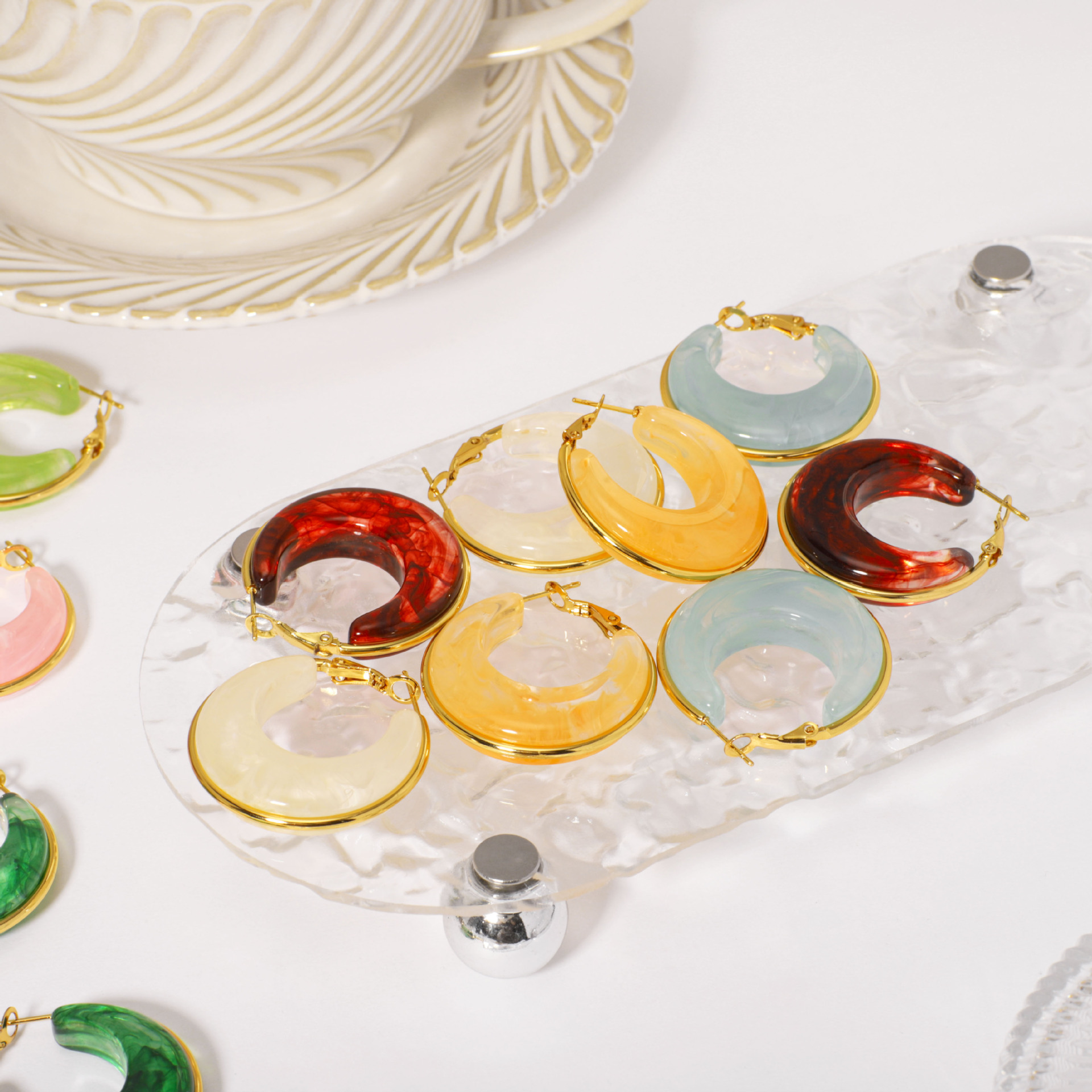 European and American Titanium Steel Niche Hot-Selling Candy Color Ins Resin Earrings Round Crescent High-Quality Earrings