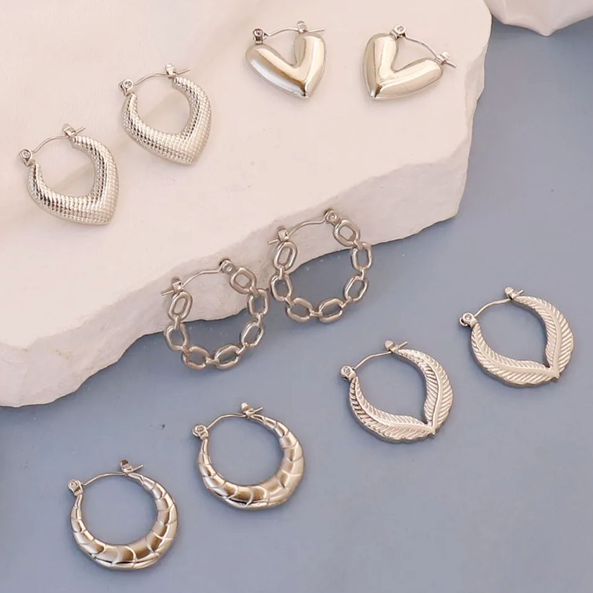 Cross-Border Fashion Stainless Steel Silver Irregular Geometric Oil Pressure Earrings High-End Niche Exaggerated Design Ear Jewelry