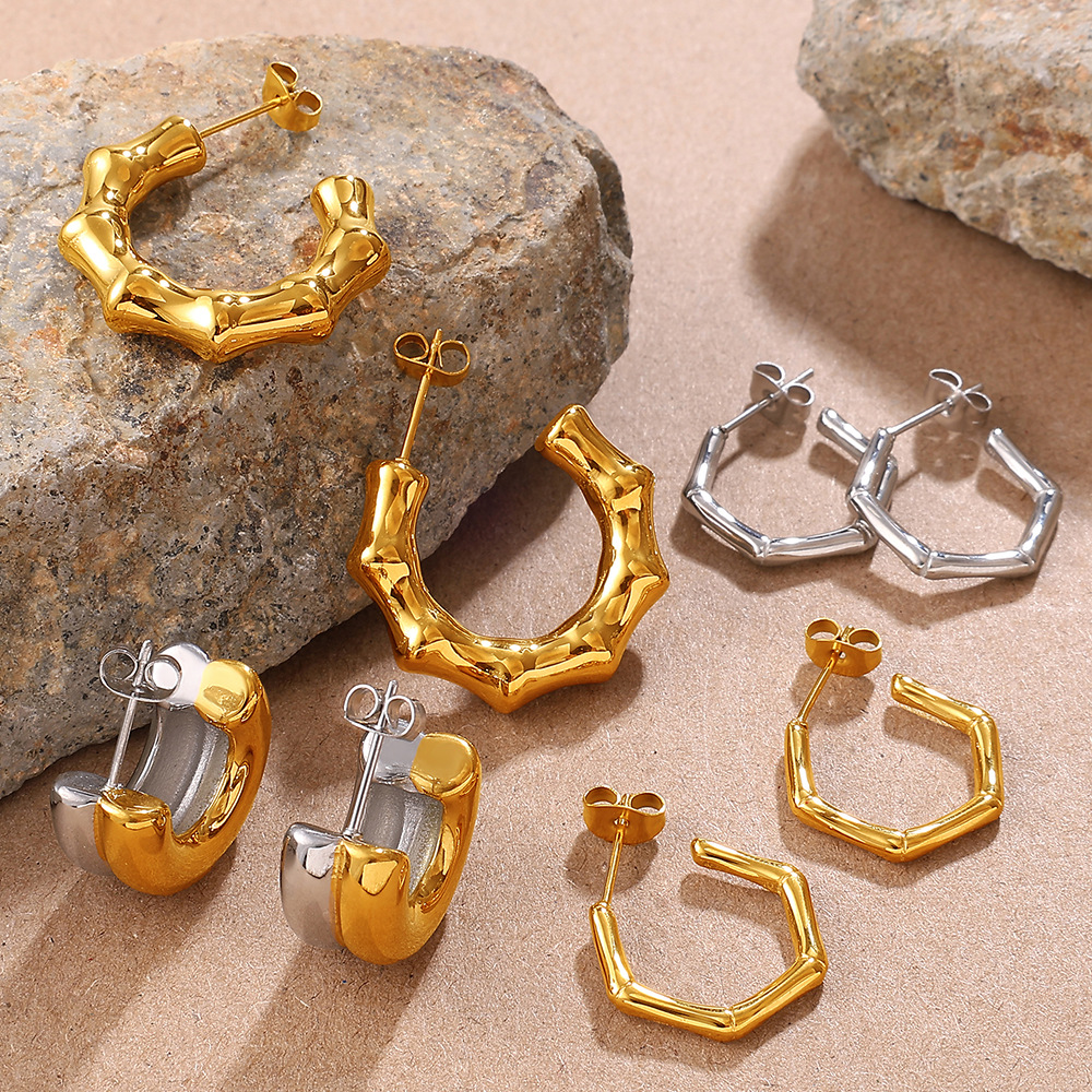 European and American Cross-Border Cool Style Geometric Hexagonal Earrings Stainless Steel Plated 18K Gold Commuter Stylish Earrings
