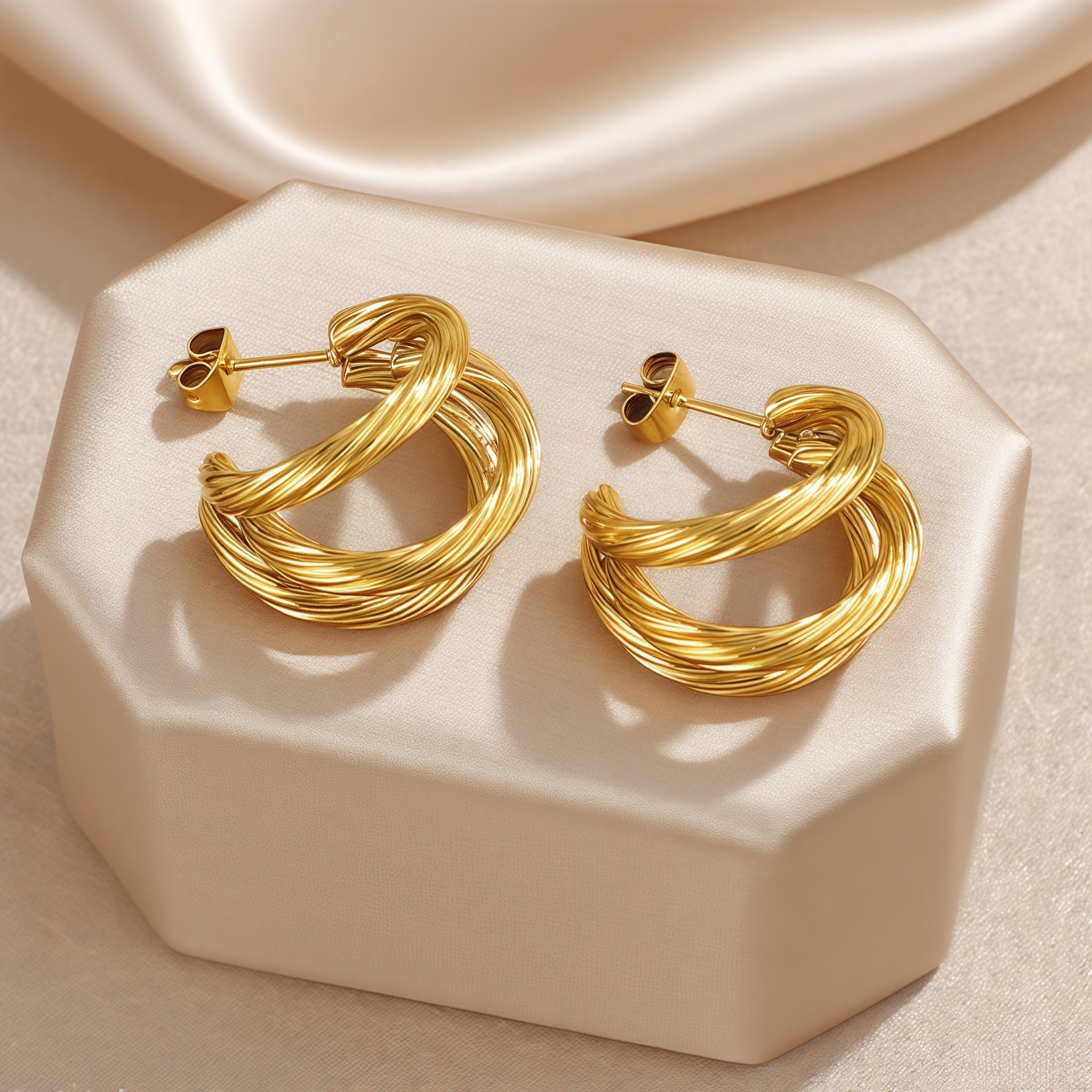 Jieding European and American Autumn and Winter Earrings, Elegant and High-End Wave Earrings, Stainless Steel Jewelry, Cross-Border Popular Jewelry