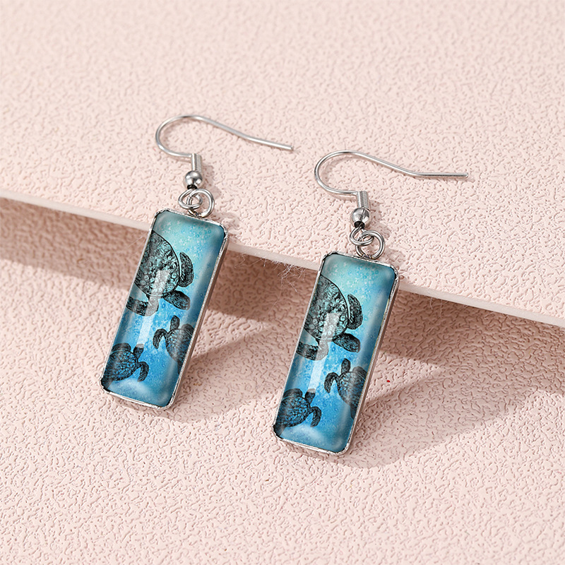 Cross-Border Undersea Animal Square Earrings Fashion Earrings Handmade Glass Jewelry Earrings Sea Turtle Rectangular Glass