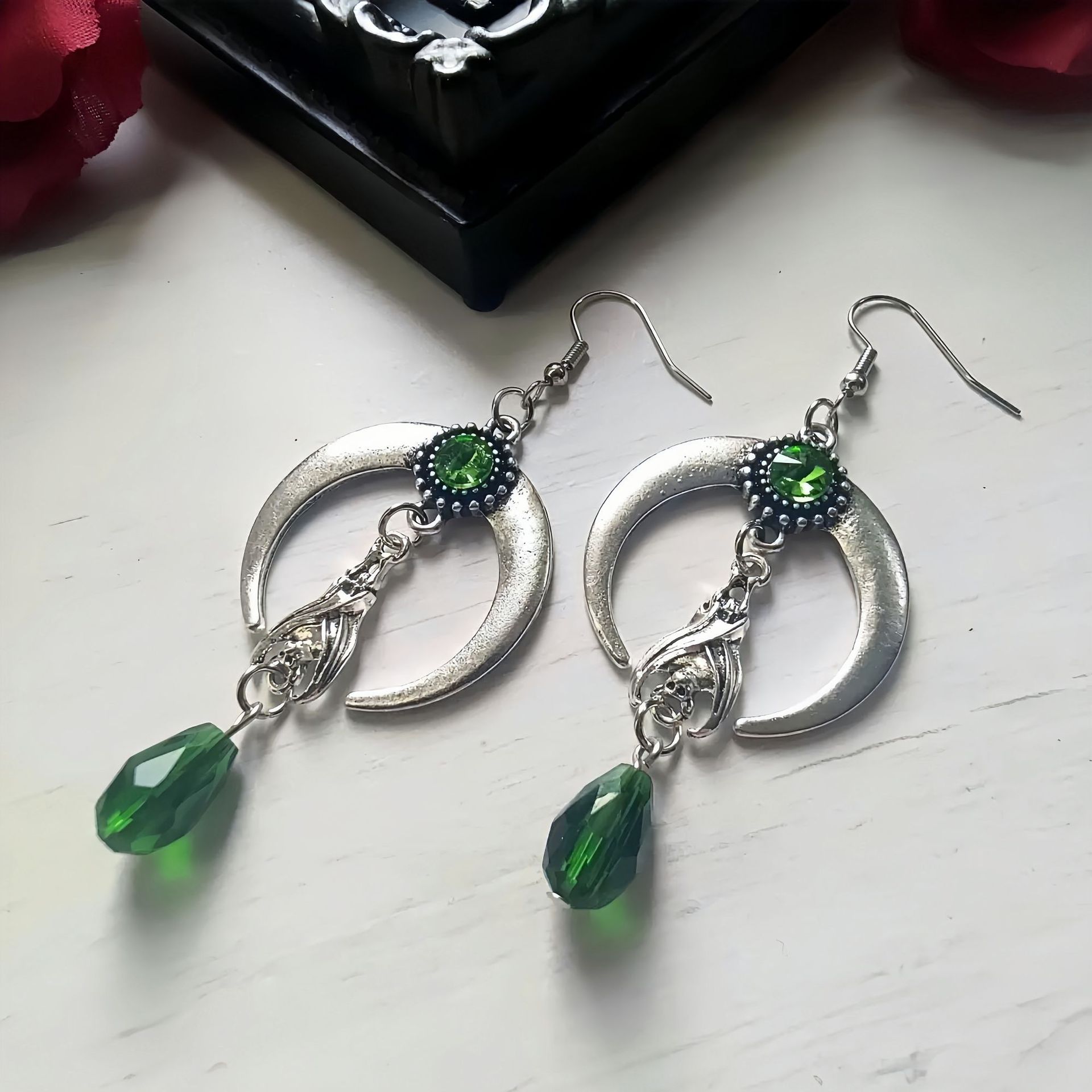 Cross-Border Export Gothic Bat and Green Crystal Moon Earrings Gothic Jewelry Factory Direct Sale