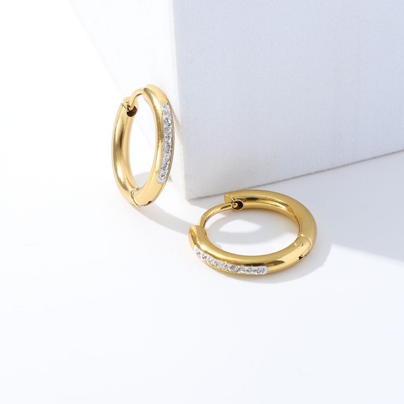 European and American Light Luxury Women's Titanium Steel Ear Ring Earrings with Diamond and Diamond Earrings Fashion Simple Accessories Stainless Steel Ear Buckle