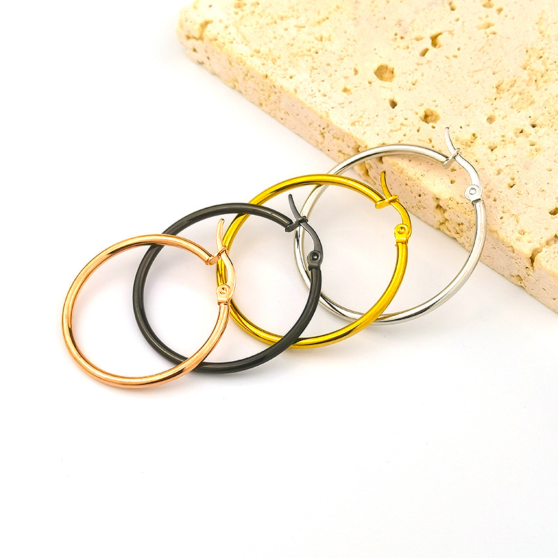 European and American Fashion Retro Geometric Hoop Earrings Non-fading 18K Fashion Versatile Titanium Steel Ear Hoop Coil Wholesale for Women