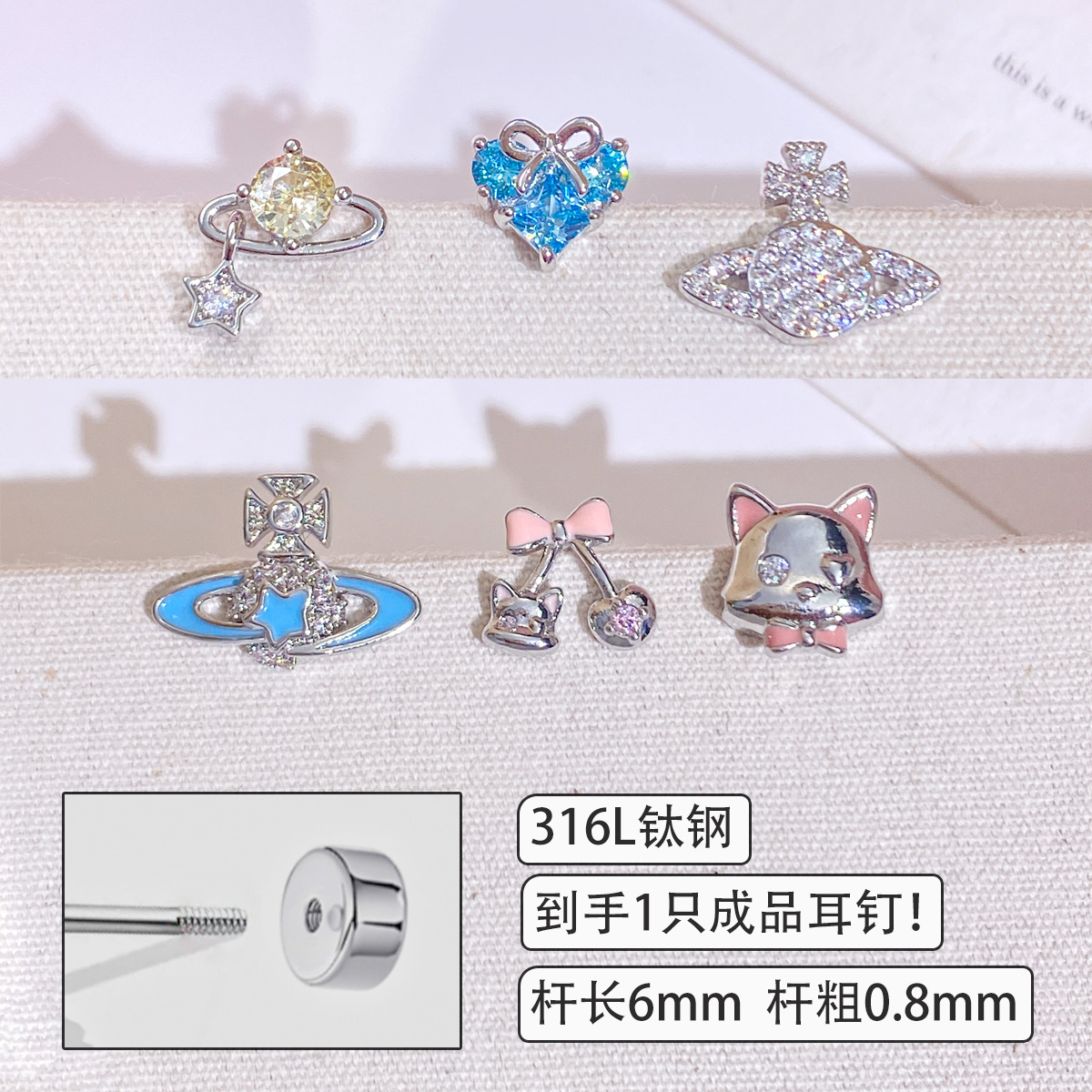 316L Titanium Steel Copper Gold Plated Western Queen Mother Galaxy New Ear Holes Fresh Sweet Style Series Ear Bone DingTalk Ear