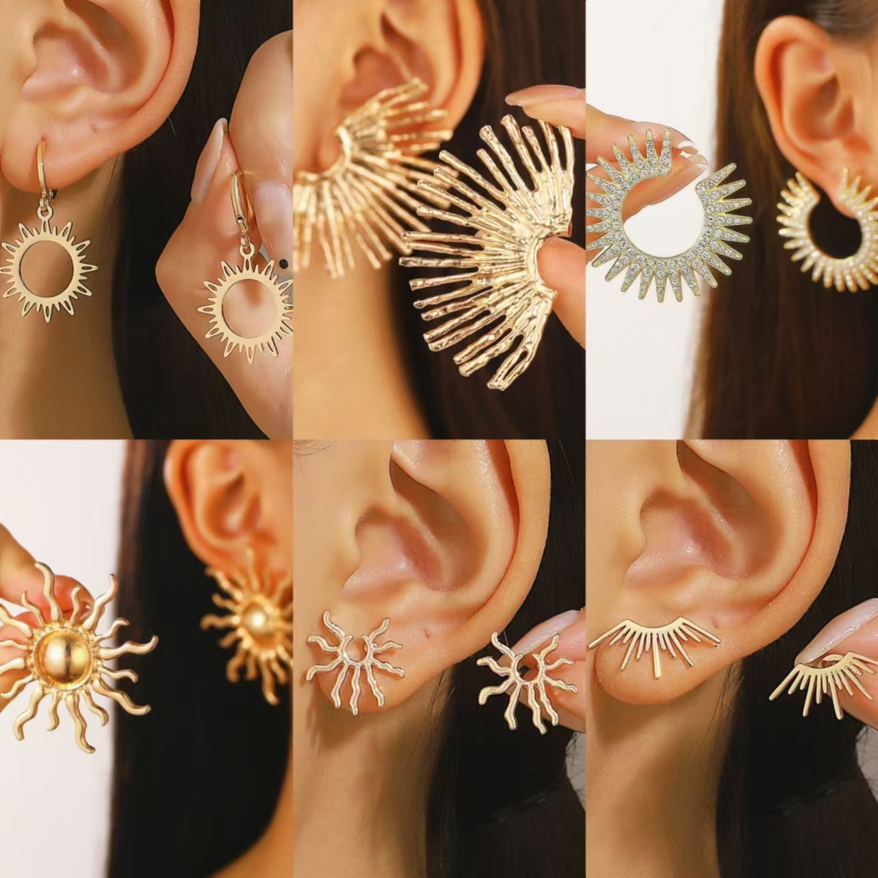 European and American Fashion Exaggerated Sunflower Light Earrings Women's Internet Celebrity Fashion Party Vintage Metallic Cold Ear Jewelry