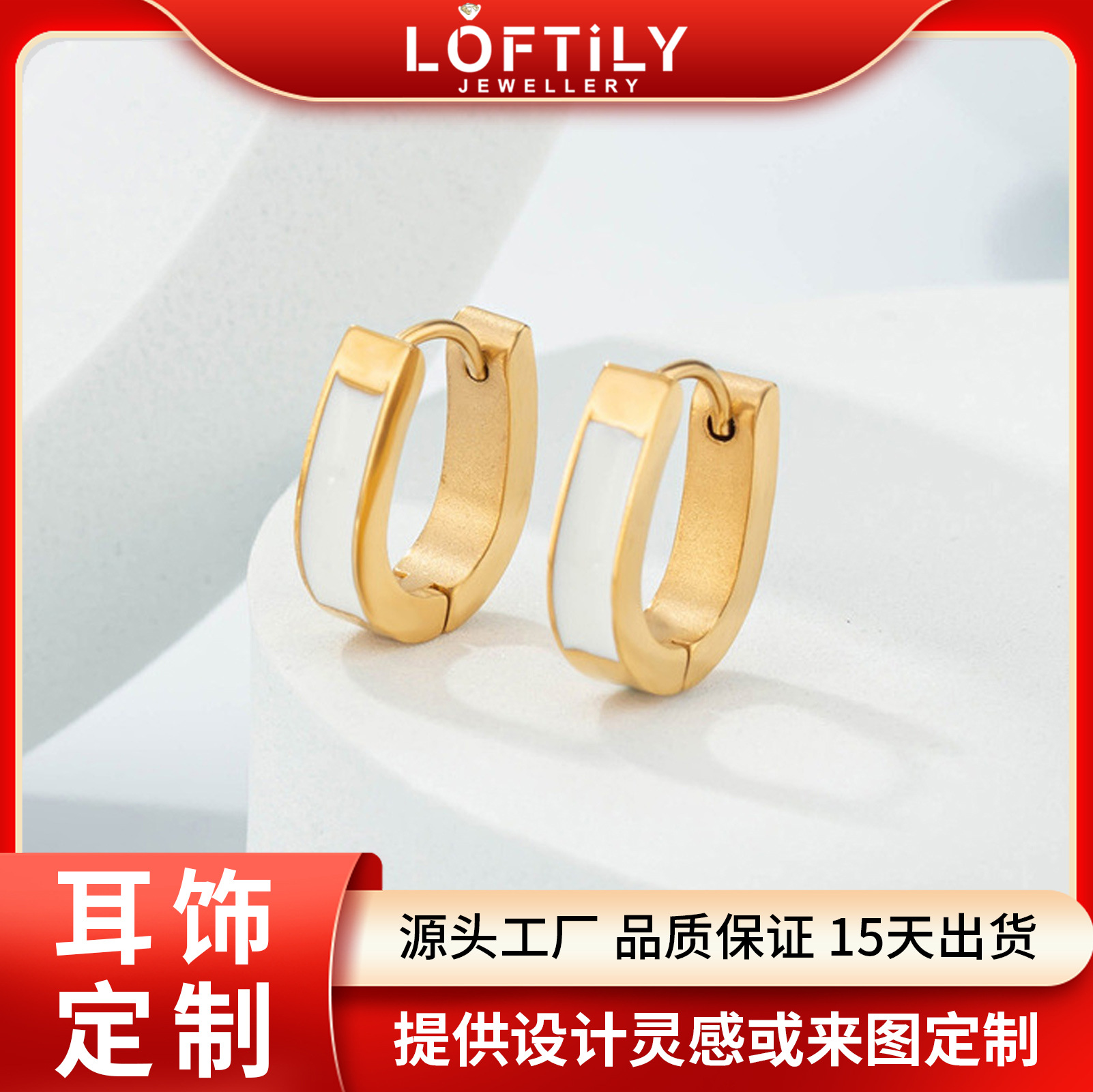 AliExpress cross-border supply stainless steel ear buckle round line earrings simple U-shaped titanium steel geometric oval earrings for women