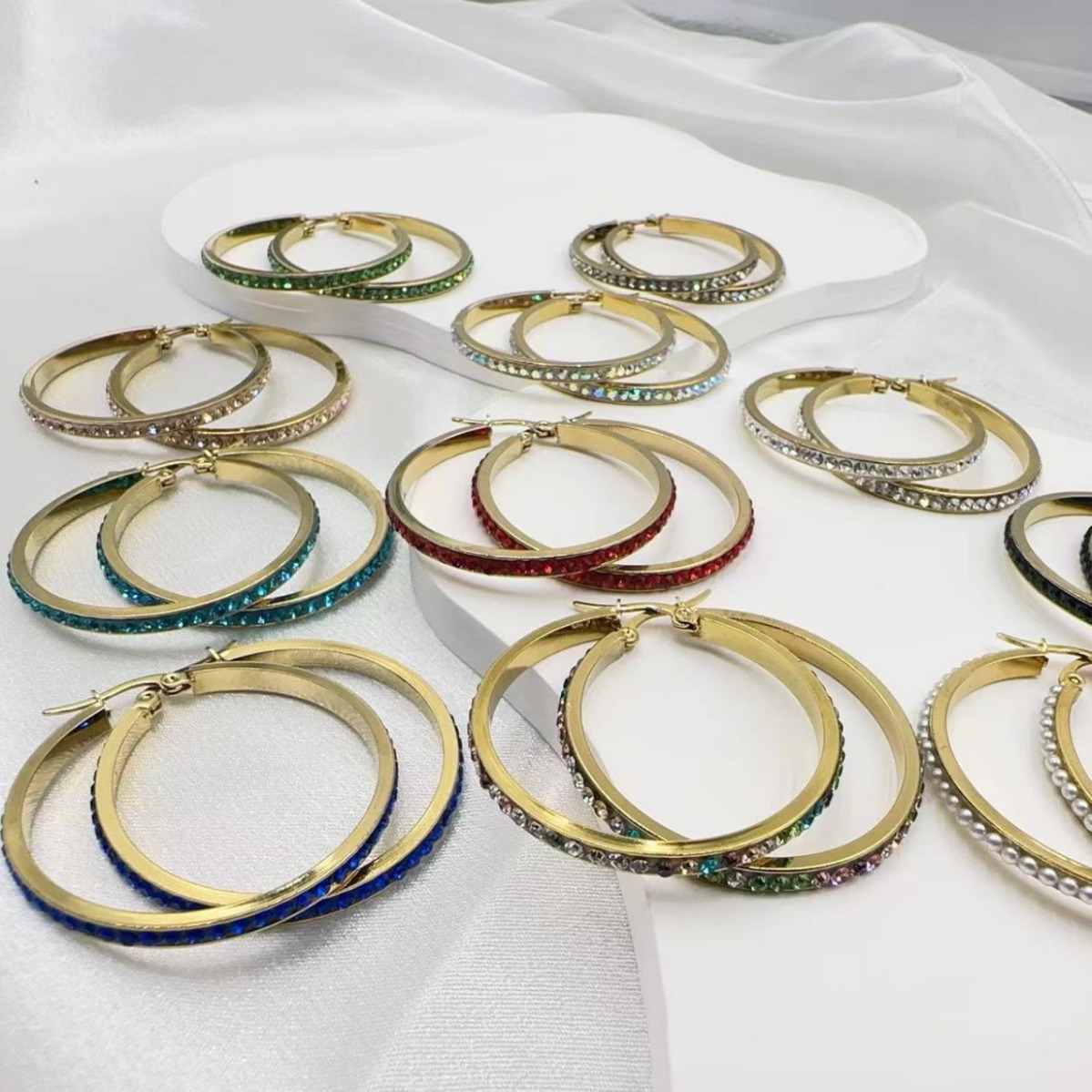 Cross-Border Tassel European and American High-End Elegant 18K Stainless Steel Full Diamond 40mm Circle Earrings Are Personalized, Fashionable and Versatile
