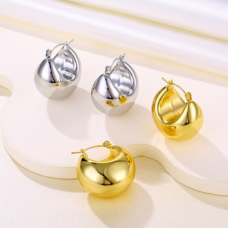 Cross-border European and American ins Round Sense Stainless Steel Hollow Earrings Simple INS Small Chubby C- shaped Ear Buckle Jewelry