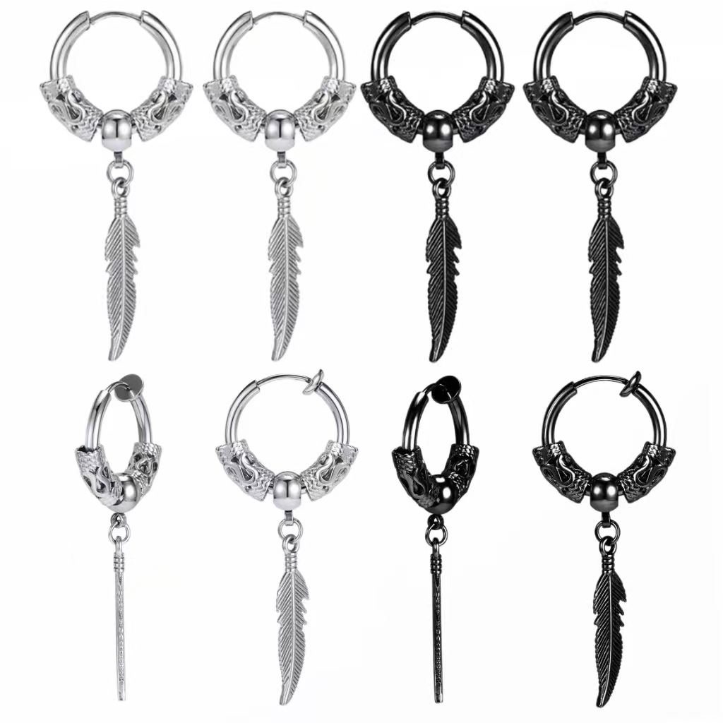 European and American fashion personality hip hop sword stainless steel cross steel titanium ear ring street rock wind metal dice