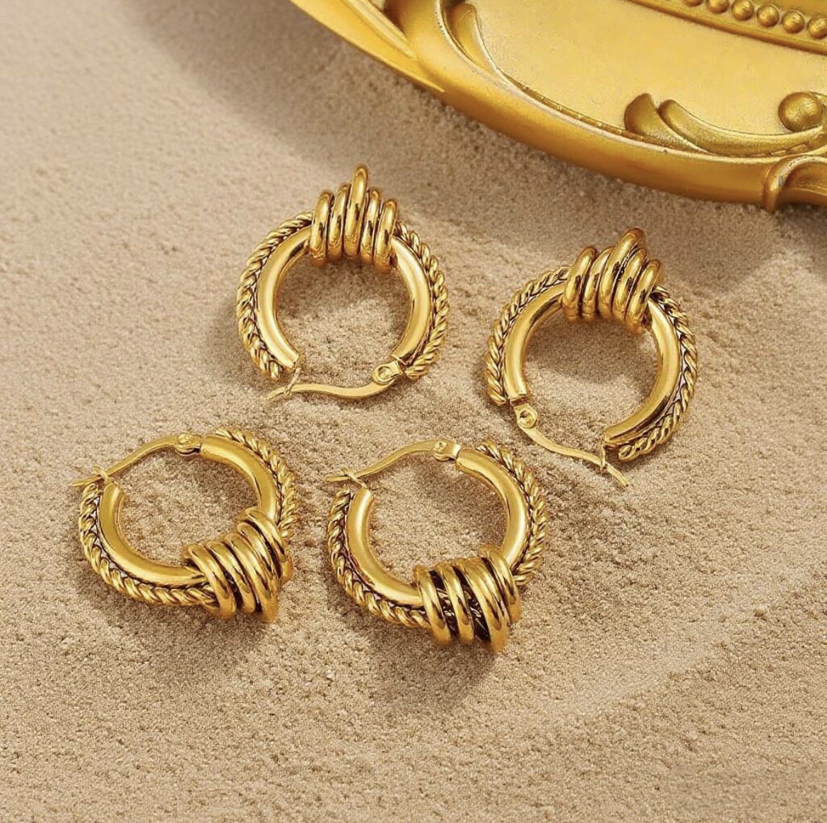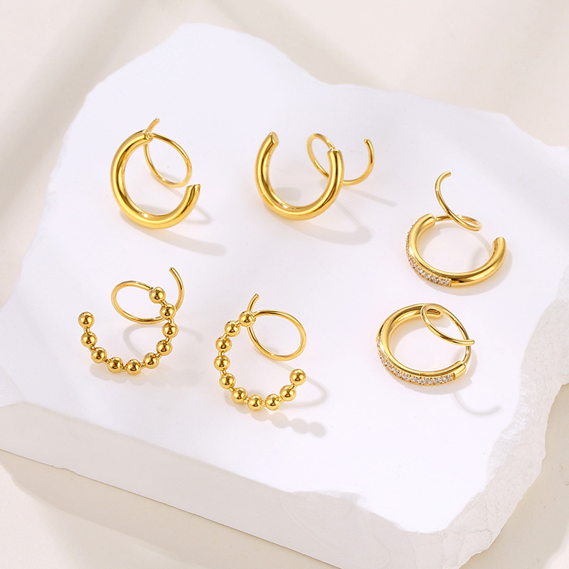 French retro fashion personality simple round stitching tassel earrings stainless steel plated 14K gold earrings for women Wholesale