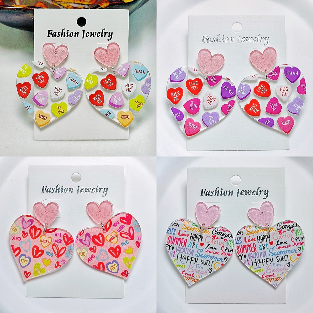Cross-Mirror Valentine's Day Heart Acrylic Sheet Printing Simple Personalized Letter Earrings Amazon Supply Heart-Shaped